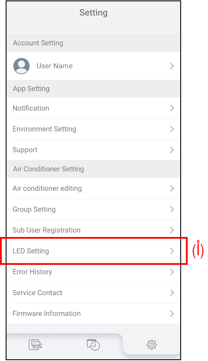 - انقر على (أ) على شاشة "Setting" لتغيير إعداد LED.