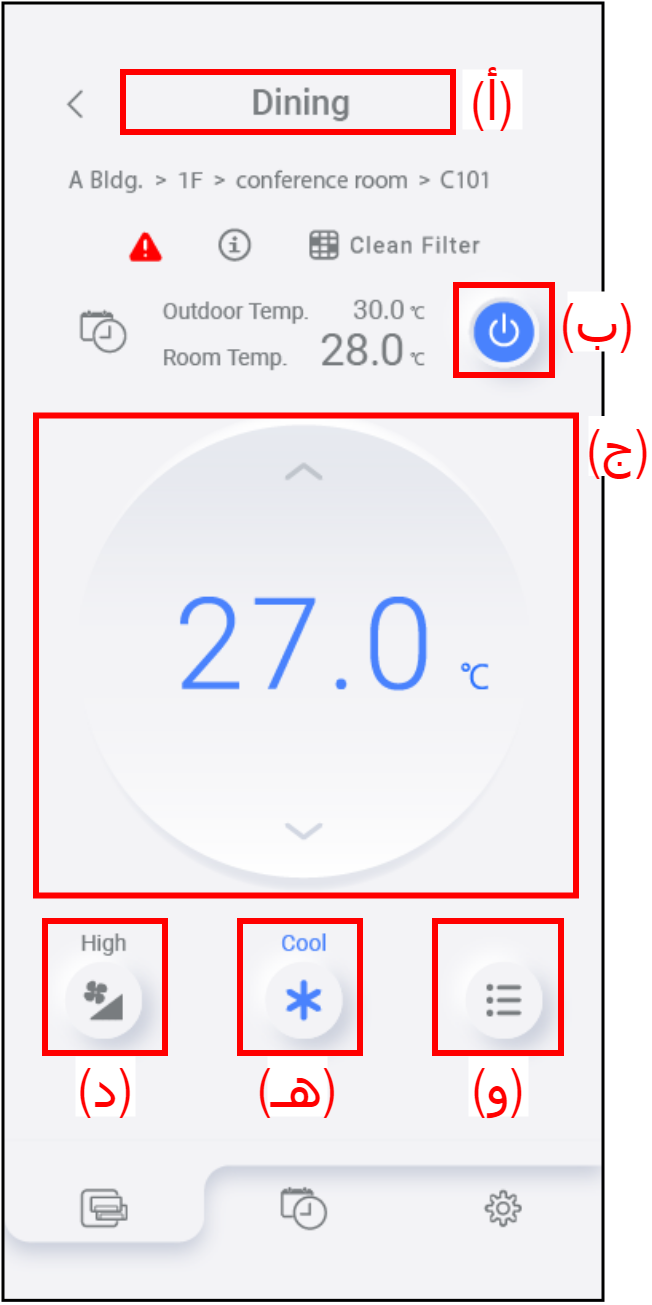 | (أ) | Air conditioner name | يعرض اسم مكيف الهواء. |