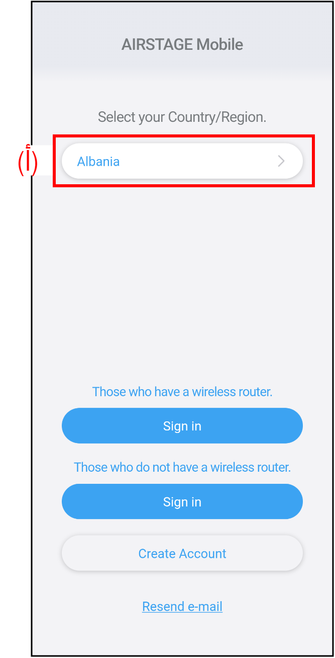- إذا لم يكن لديك حساب AIRSTAGE Mobile، فأنشئ حسابًا جديدًا باتباع "إنشاء حساب".