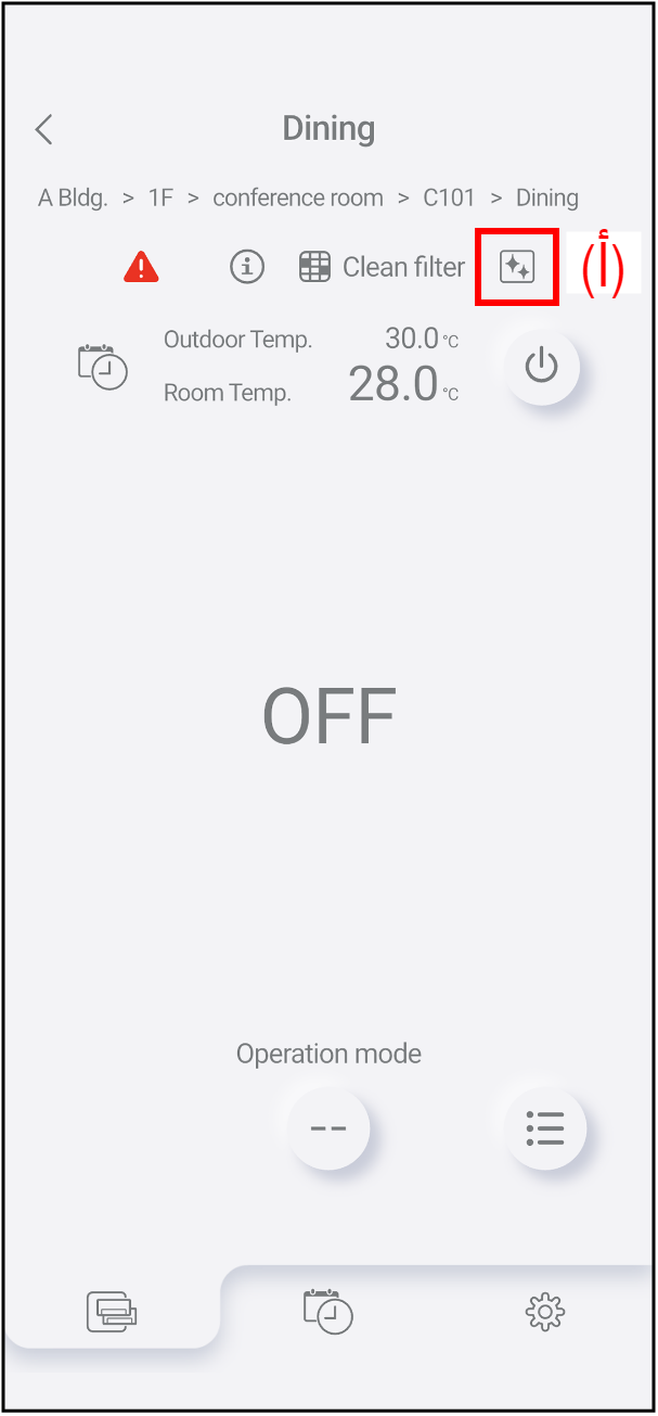 انقر على الأيقونة (أ) لعرض نافذة "التنظيف الداخلي".