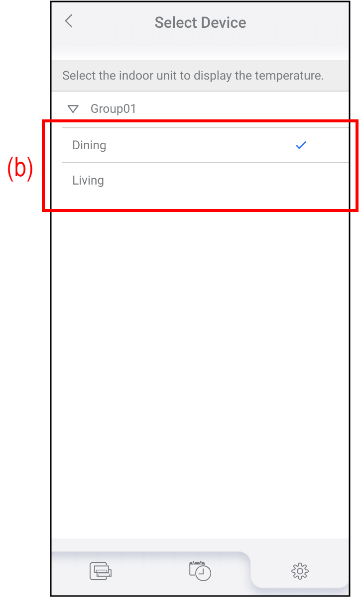 - Докоснете (b), за да изберете климатика, който да използвате като представителен климатик.