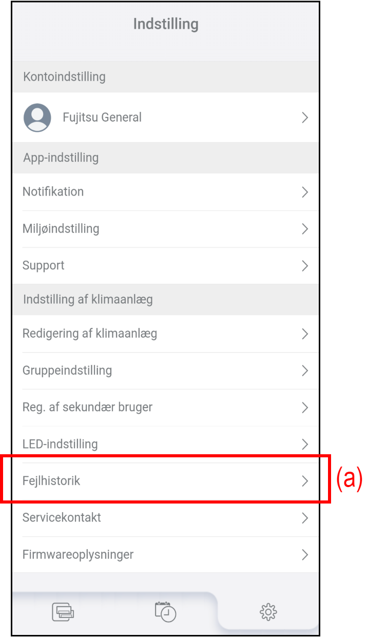 - Tryk på (a) på skærmen "Indstilling" for at tjekke fejlhistorikken.