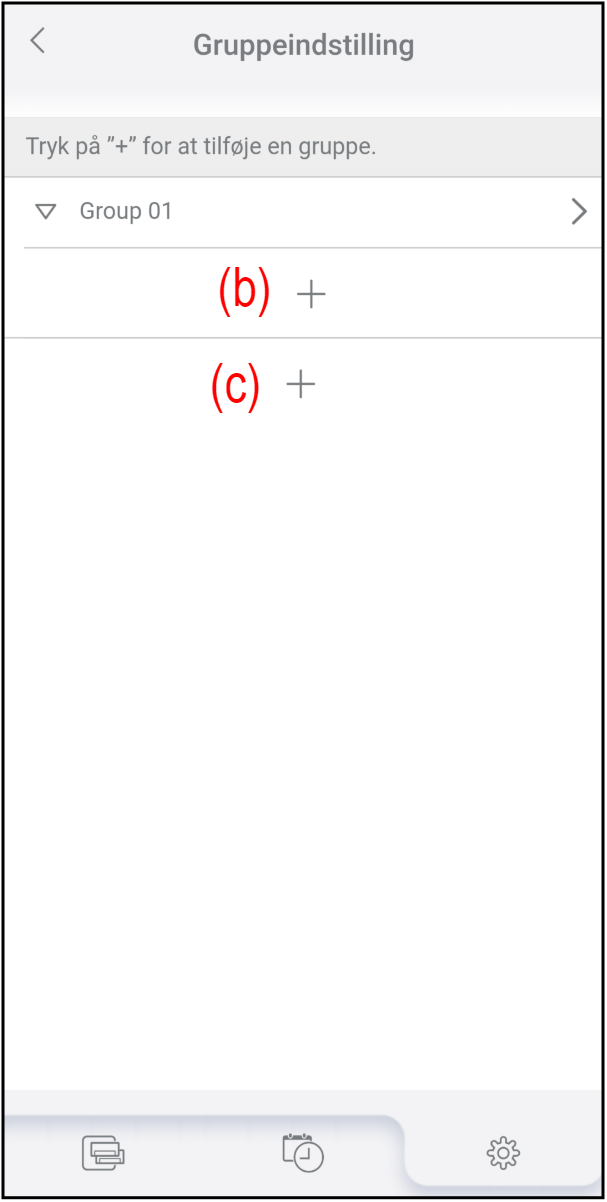 " nederst på skærmen for at tilføje en gruppe på øverste niveau. (Knappen (c) i følgende figur).