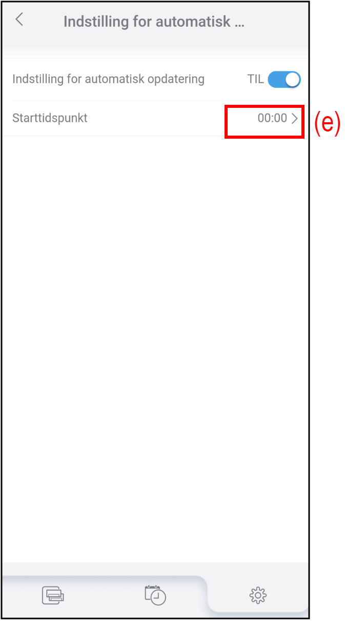 - Tryk på (e) for at indstille tidspunktet for start af den automatiske firmwareopdatering.