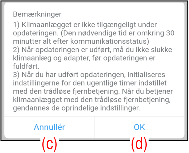 Tryk på (d) for at aktivere den automatisk firmwareopdatering.