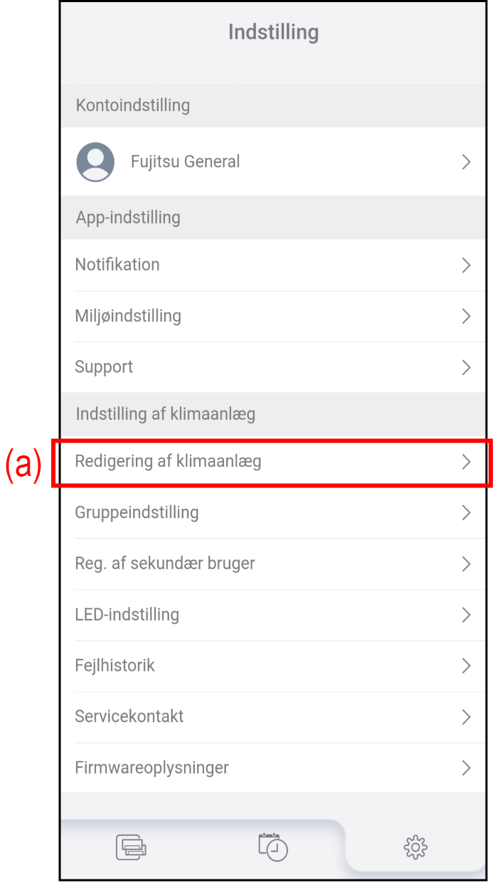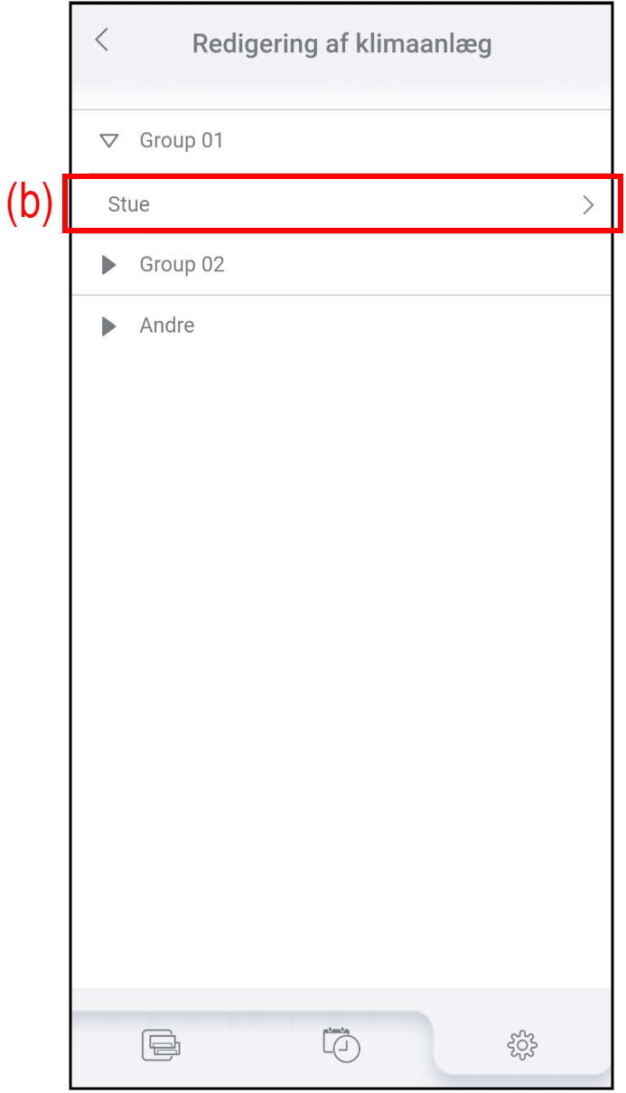 - Tryk på det klimaanlæg (b), som du vil redigere navnet på eller slette.