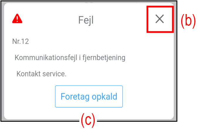 Tryk på knappen (c) for at foretage en telefonopringning til servicekontaktpersonen.