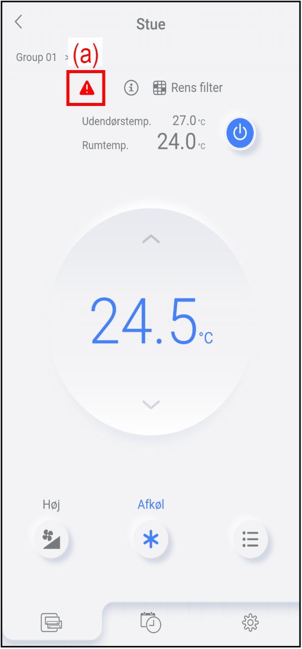 " vises på skærmen, skal du trykke på dette ikon (a) for at kontrollere fejloplysningerne.