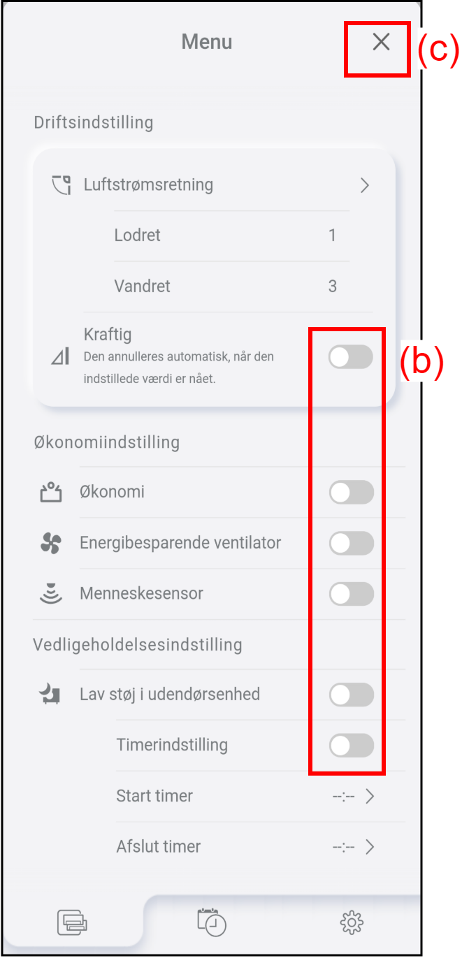 Tryk på (b) for at aktivere/deaktivere hver funktion.