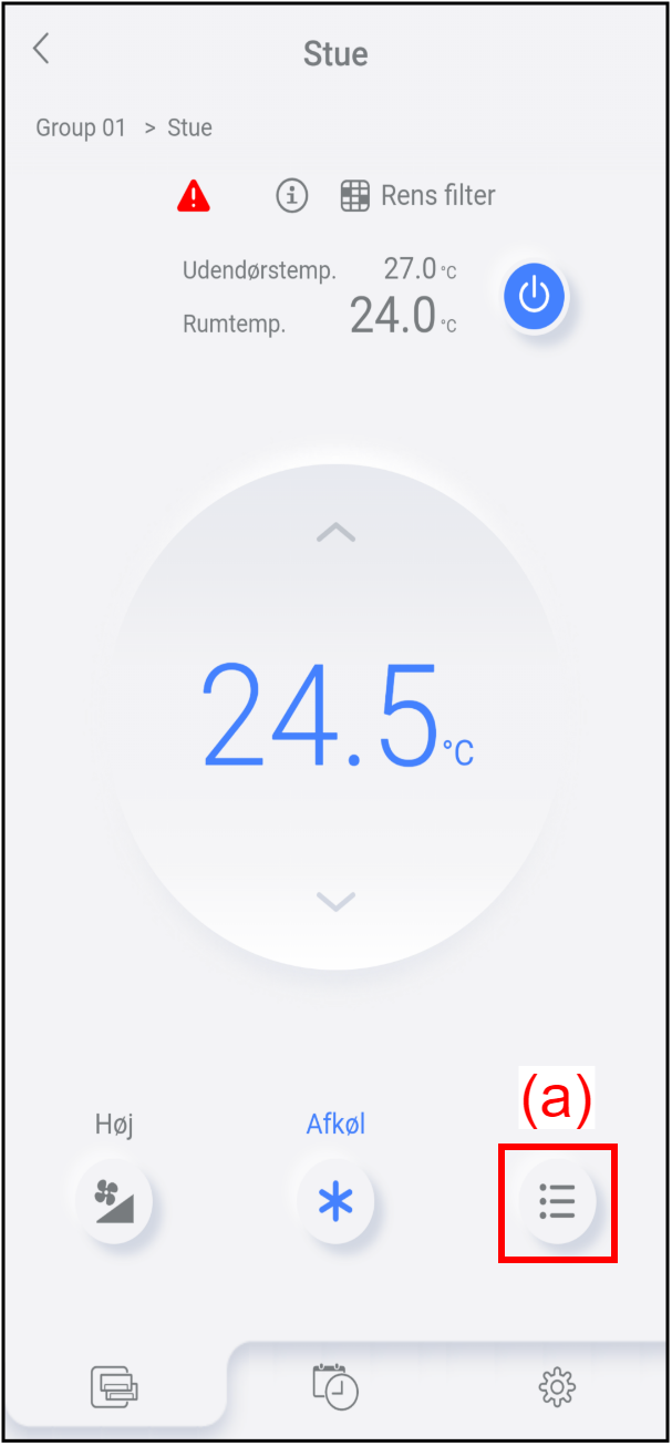 Du kan ændre driftsindstillingerne og bruge forskellige funktioner fra det individuelle klimaanlægs skærm.