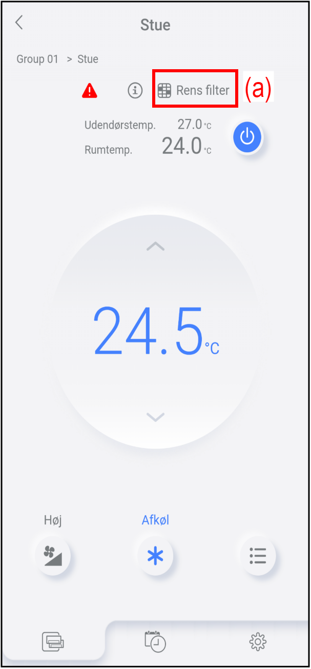 For procedurer til rengøring af filteret henvises til klimaanlæggets betjeningsvejledning.