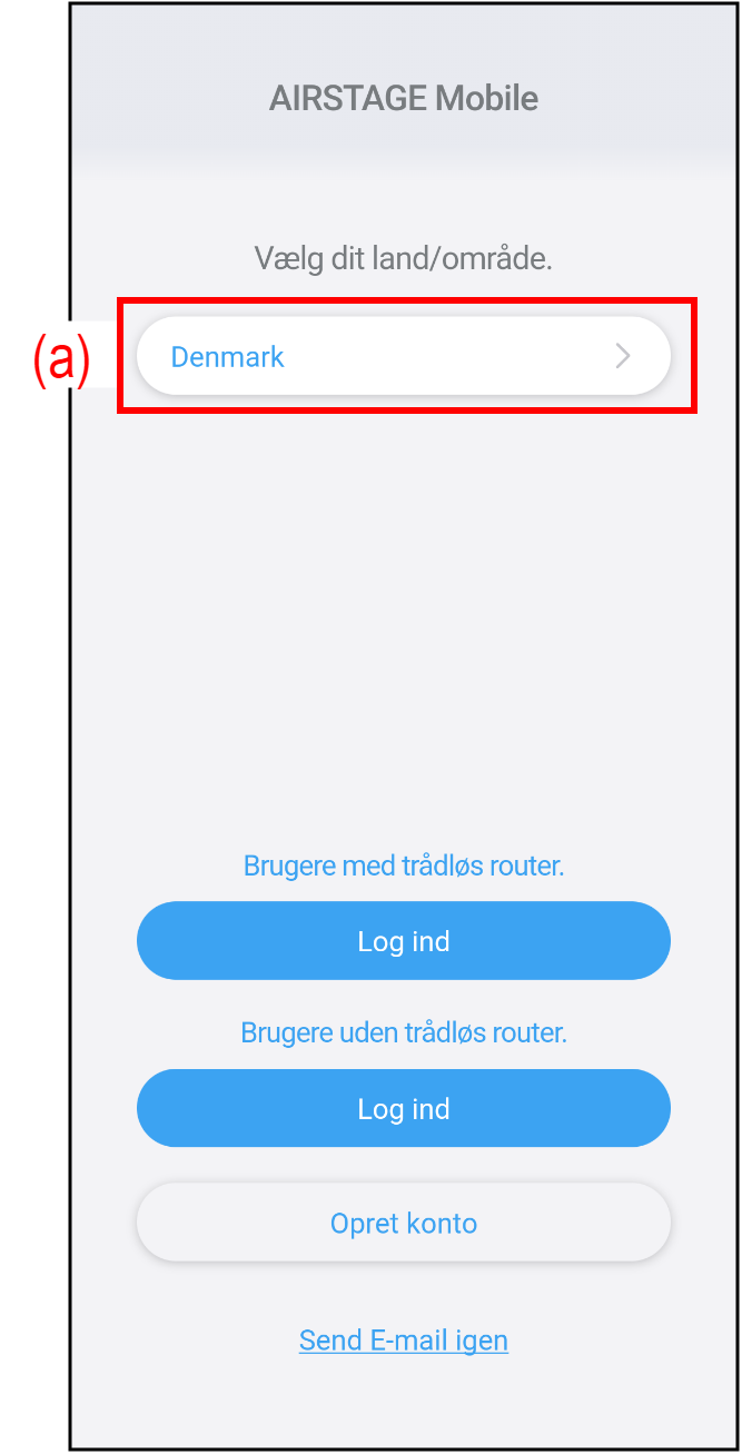 Hvis du have an AIRSTAGE Mobile-konto, skal du logge ind på AIRSTAGE Mobile. Se "Indlogning" for detaljer.