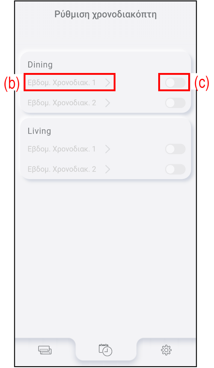 Πατήστε (c) για να ενεργοποιήσετε/απενεργοποιήσετε τον Εβδομαδιαίο χρονοδιακόπτη.