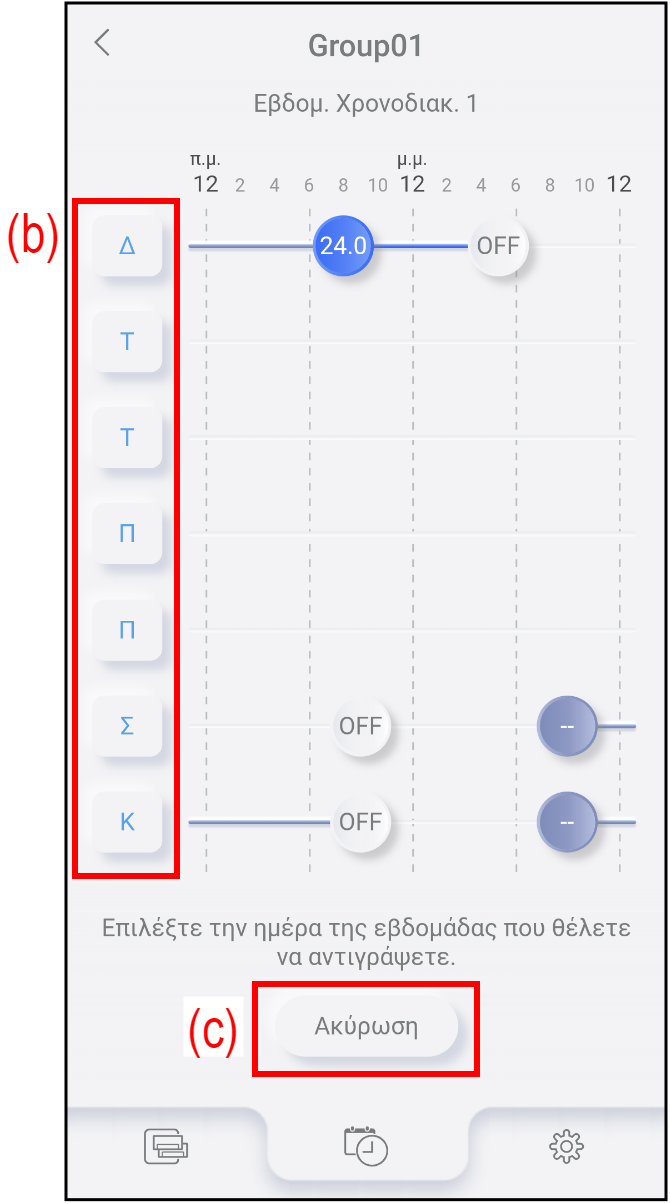 - Επιλέξτε την ημέρα της εβδομάδας (b) από την οποία θέλετε να αντιγράψετε.