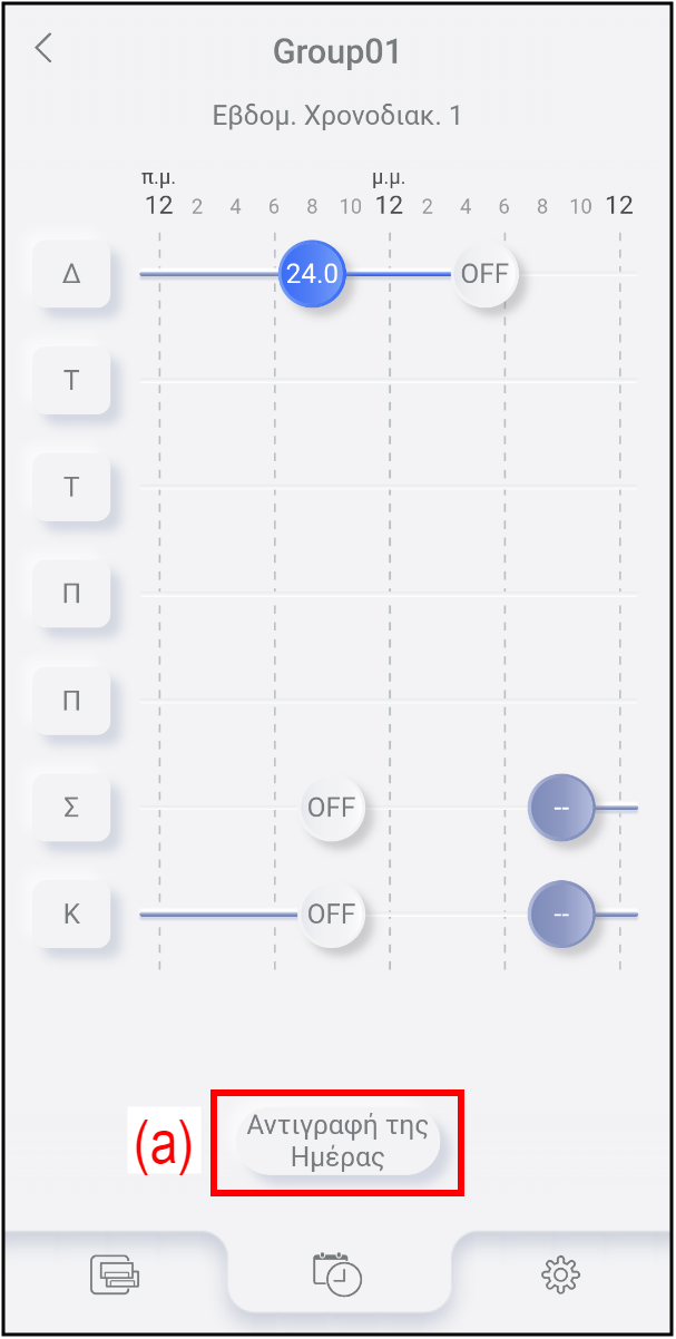 Μπορείτε να αντιγράψετε τις ρυθμίσεις χρονοδιακόπτη μιας ημέρας της εβδομάδας σε μια άλλη ημέρα.