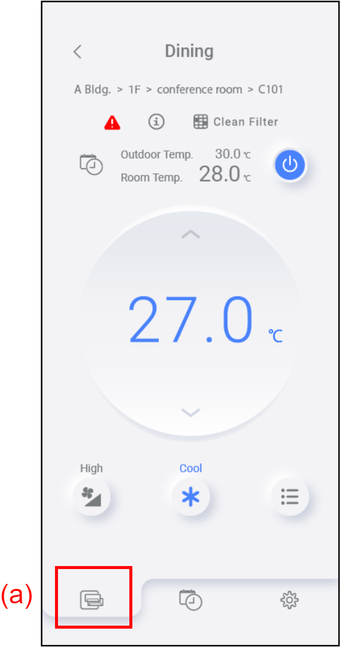 You can use the basic functions of the air conditioners from the air conditioner tab (a) ( [