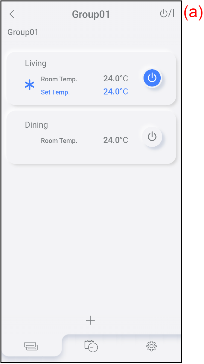 Tap (c) to start/stop the operation of each air conditioner.