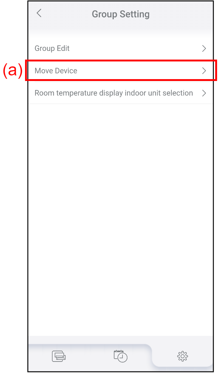 - Tap (a) on the "Group Setting" screen to move the air conditioner to another group.