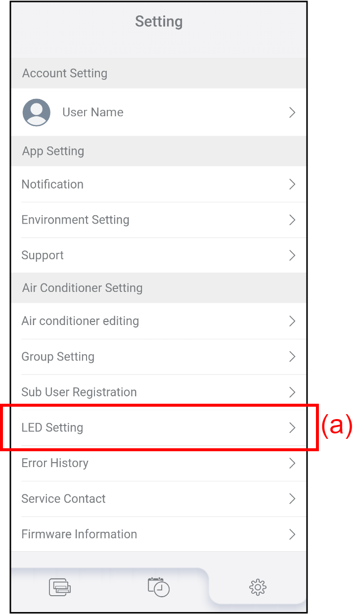 - Tap (a) on the "Setting" screen to change the LED setting.