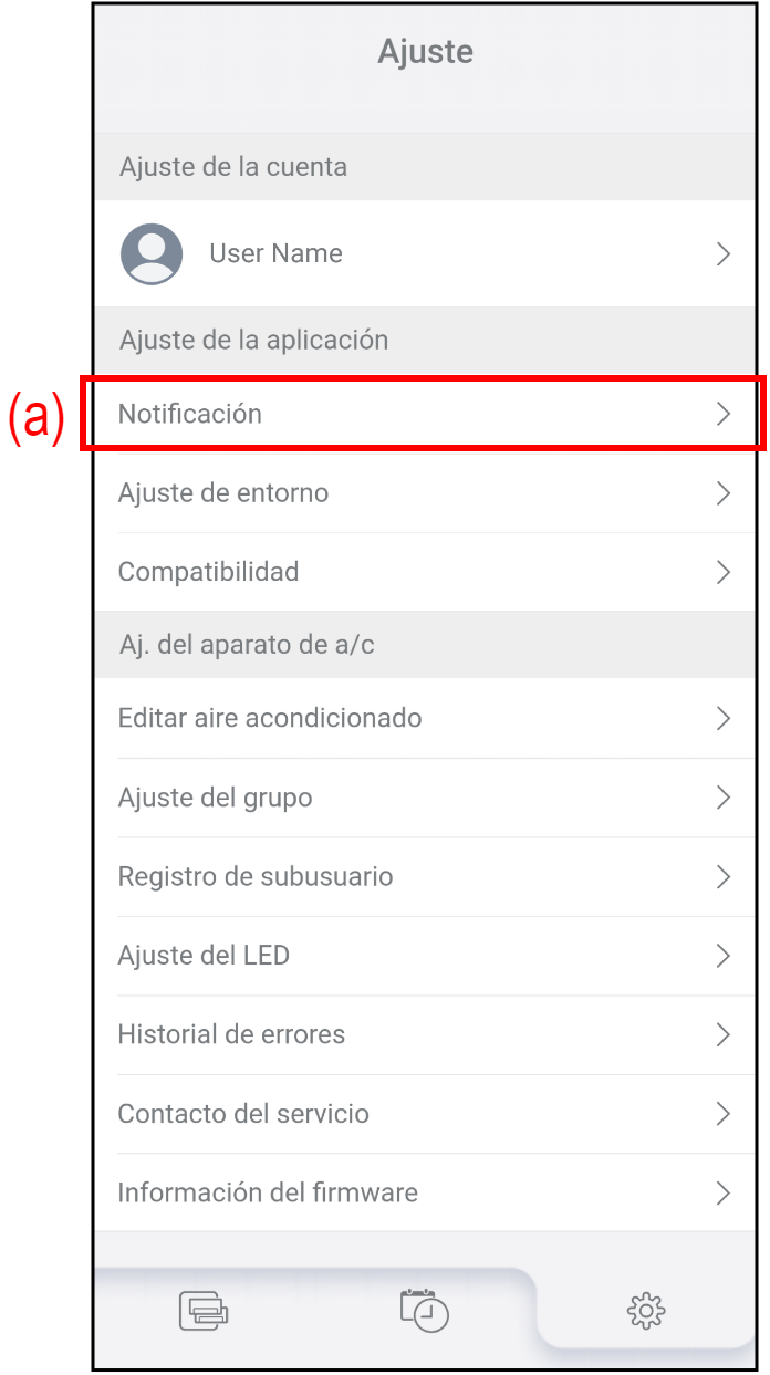 Toque (a) en la pantalla "Ajuste" para comprobar las notificaciones anteriores.