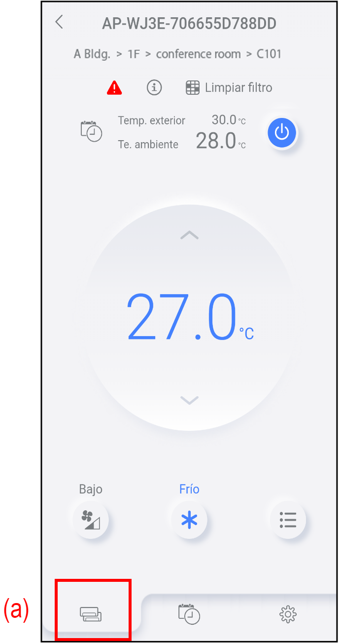 Puedes utilizar las funciones básicas de los aparatos de aire acondicionado desde la pestaña de aire acondicionado (a) ( [