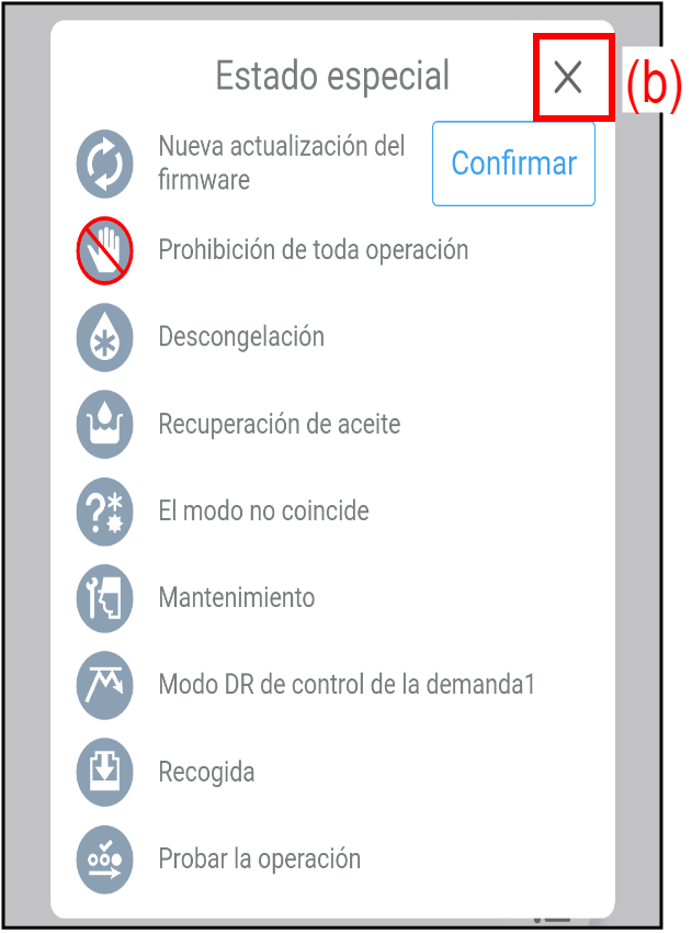 Prohibición | El manejo desde esta aplicación está prohibido por el controlador central. |