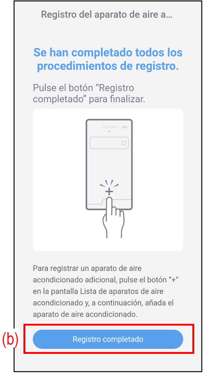 - Toque (a) para empezar a registrar un nuevo aparato de aire acondicionado en esta aplicación.