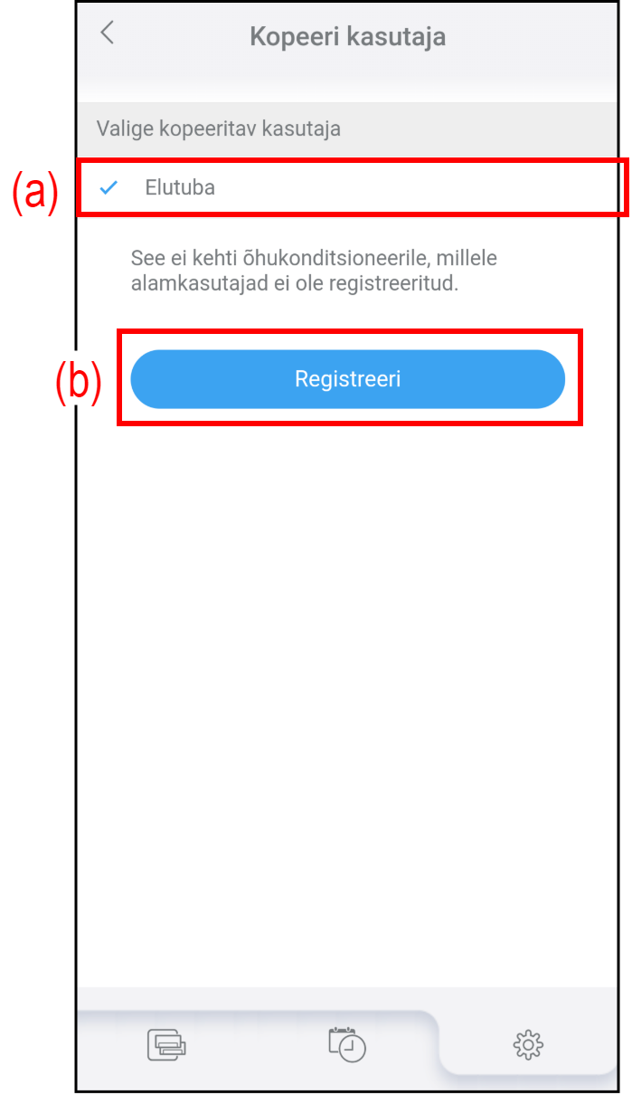 - Valige ekraanil „Kopeeri kasutaja“ kliimaseade (a), millelt soovite alamkasutaja seade kopeerida.
