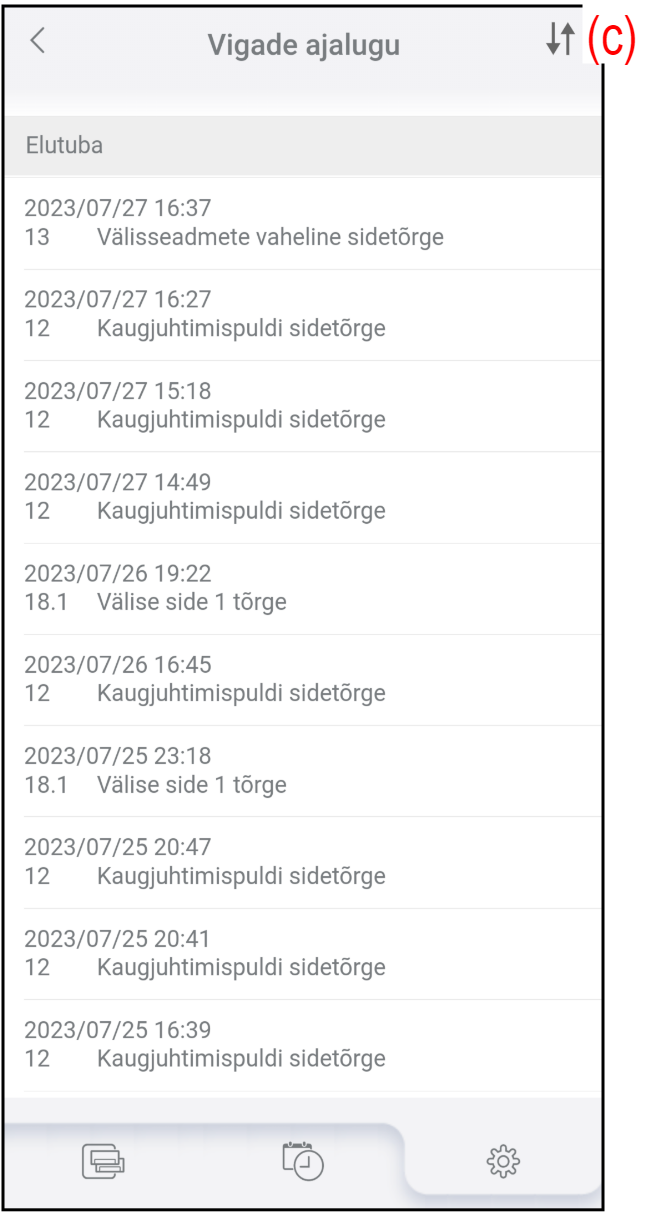 - Kliimaseadme tõrkeajalugu kuvatakse järjestuses uusimast vanimani.