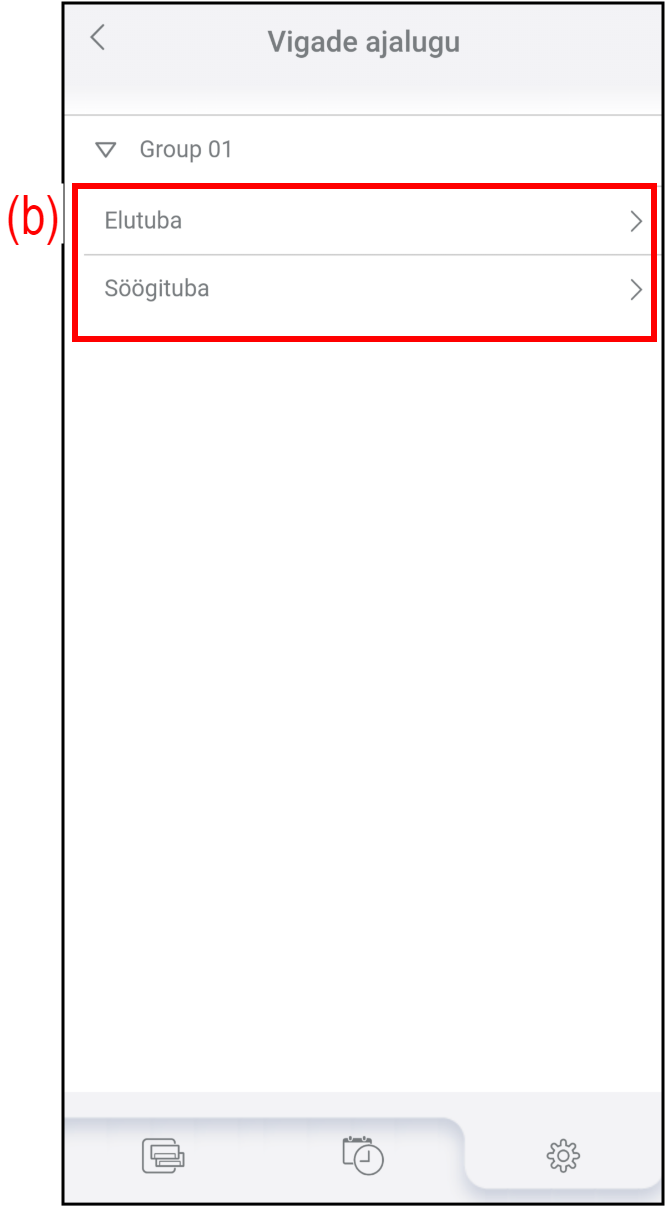 - Kliimaseadme valimiseks ja tõrkeajaloo vaatamiseks puudutage nuppu (b).