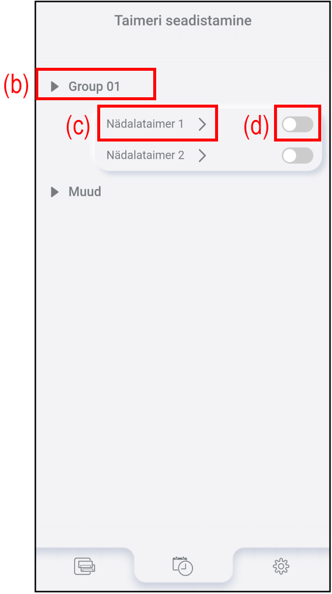 Rühma taimeri seadistus (kui rühm on seadistatud)
