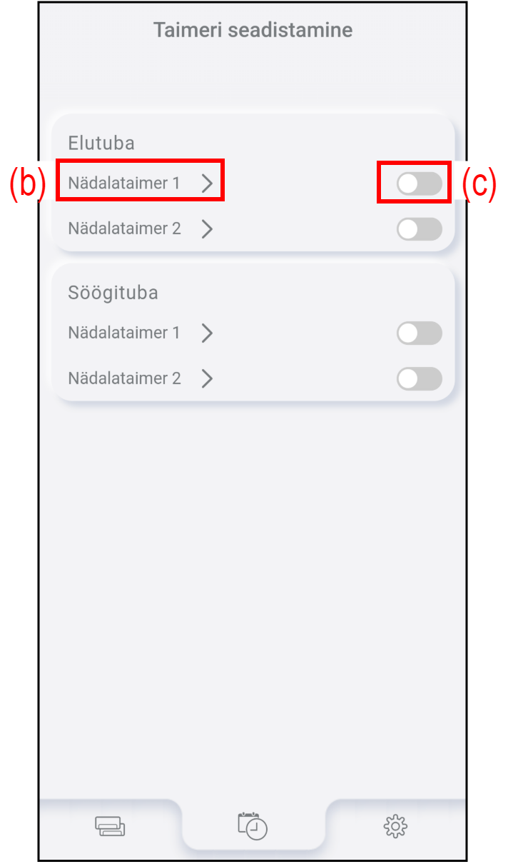 Nädalataimeri aktiveerimiseks/inaktiveerimiseks puudutage (c).