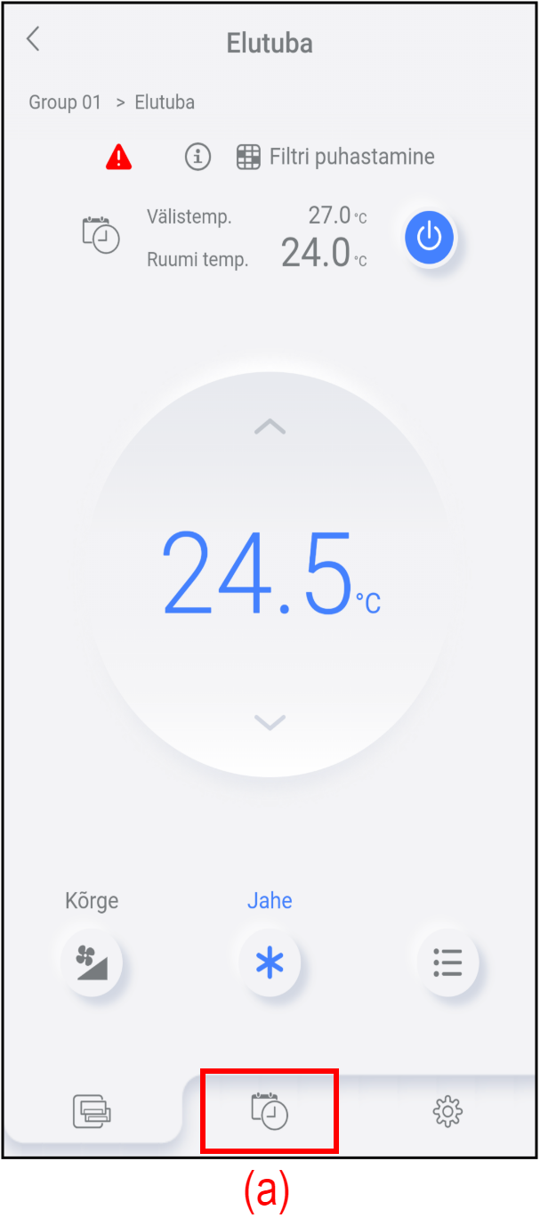 Rühma registreeritud kliimaseadmete vaatamiseks puudutage nuppu (b).