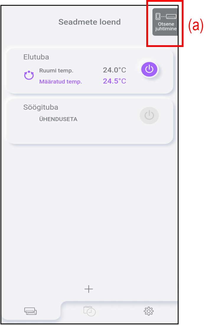 Juhtrežiimi vahetamiseks režiimilt „Cloud Control“ (Pilvjuhtimine) režiimile „Direct Control“ (Otsene juhtimine) kasutage seda rakendust järgmiselt.