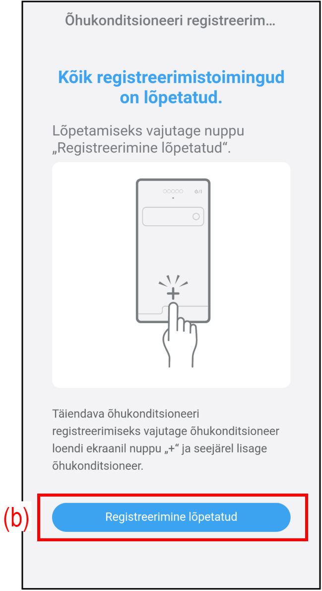 - Puudutage (a), et alustada sellesse rakendusse uue kliimaseadme registreerimist.
