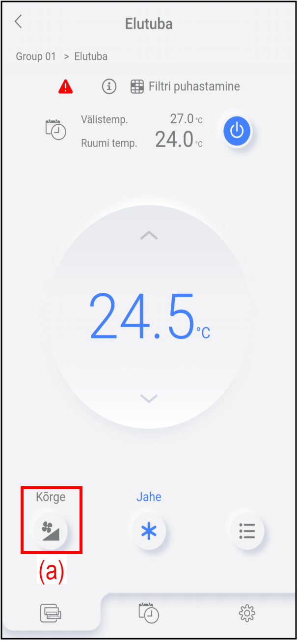 Ventilaatori kiiruse muutmiseks puudutage (a).