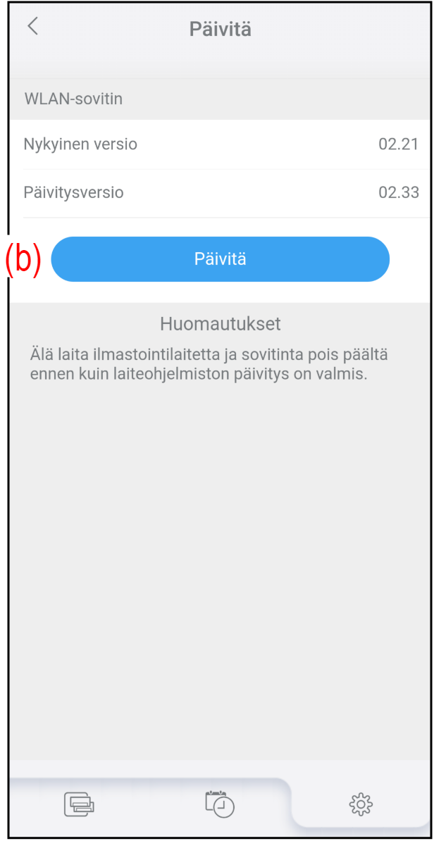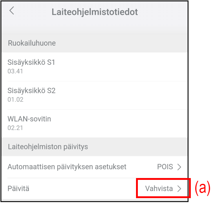 - Käynnistä laiteohjelmistopäivitys napauttamalla kohtaa (b).