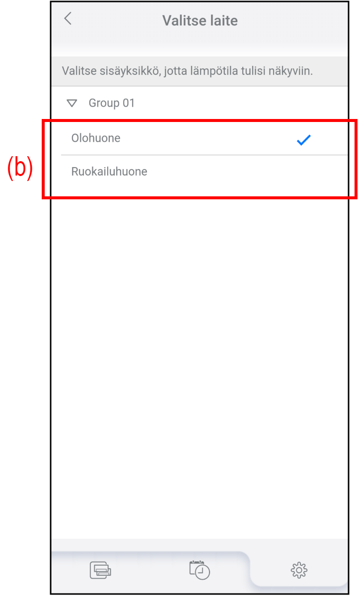 - Valitse ensisijaisena ilmastointilaitteena toimiva ilmastointilaite napauttamalla kohtaa (b).