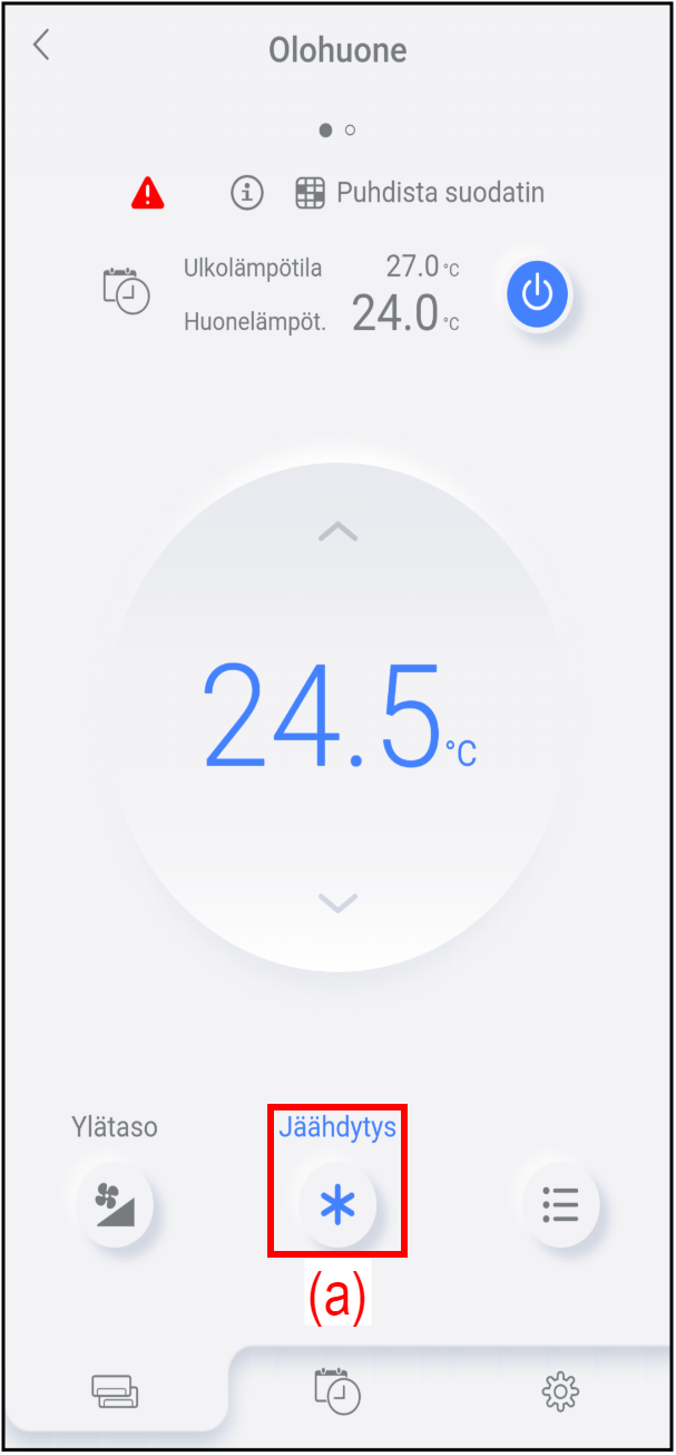 Muuta toimintatilaa napauttamalla kohtaa (a).