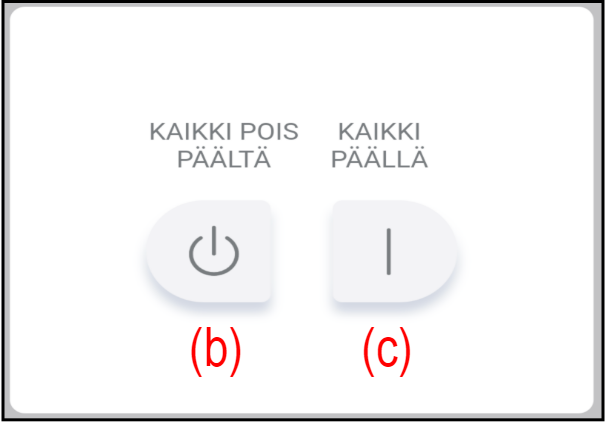 | (b) | Kaikki Päälle/Pois-painikkeet | Käynnistä/lopeta kaikkien ilmastointilaitteiden käyttö napauttamalla tästä. |