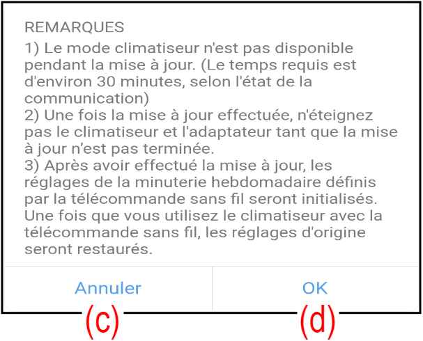 Pour fermer la fenêtre sans activer la mise à jour automatique du micrologiciel, appuyez sur (c).