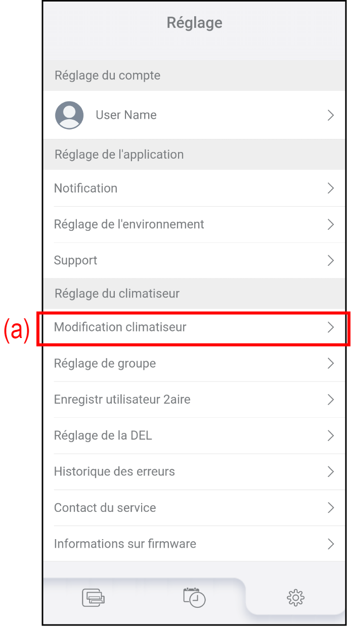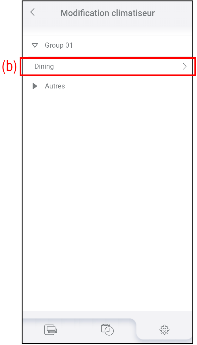 - Appuyez sur le climatiseur (b) dont vous souhaitez modifier le nom ou que vous souhaitez supprimer.