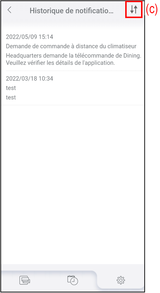 L'historique des notifications est affiché dans l'ordre de la dernière première.