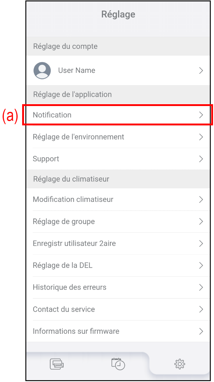 Appuyez sur (a) sur l'écran « Réglage » pour vérifier les anciennes notifications.
