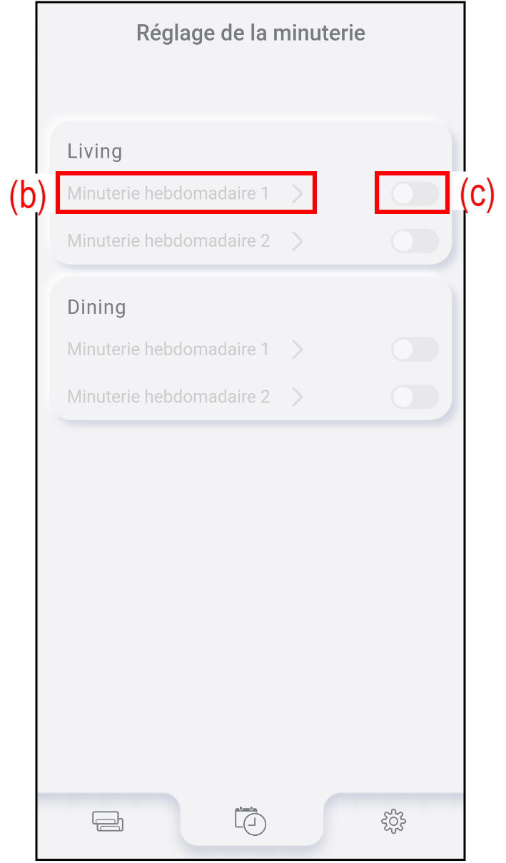 Appuyez sur (c) pour activer/désactiver la minuterie Hebdomadaire.