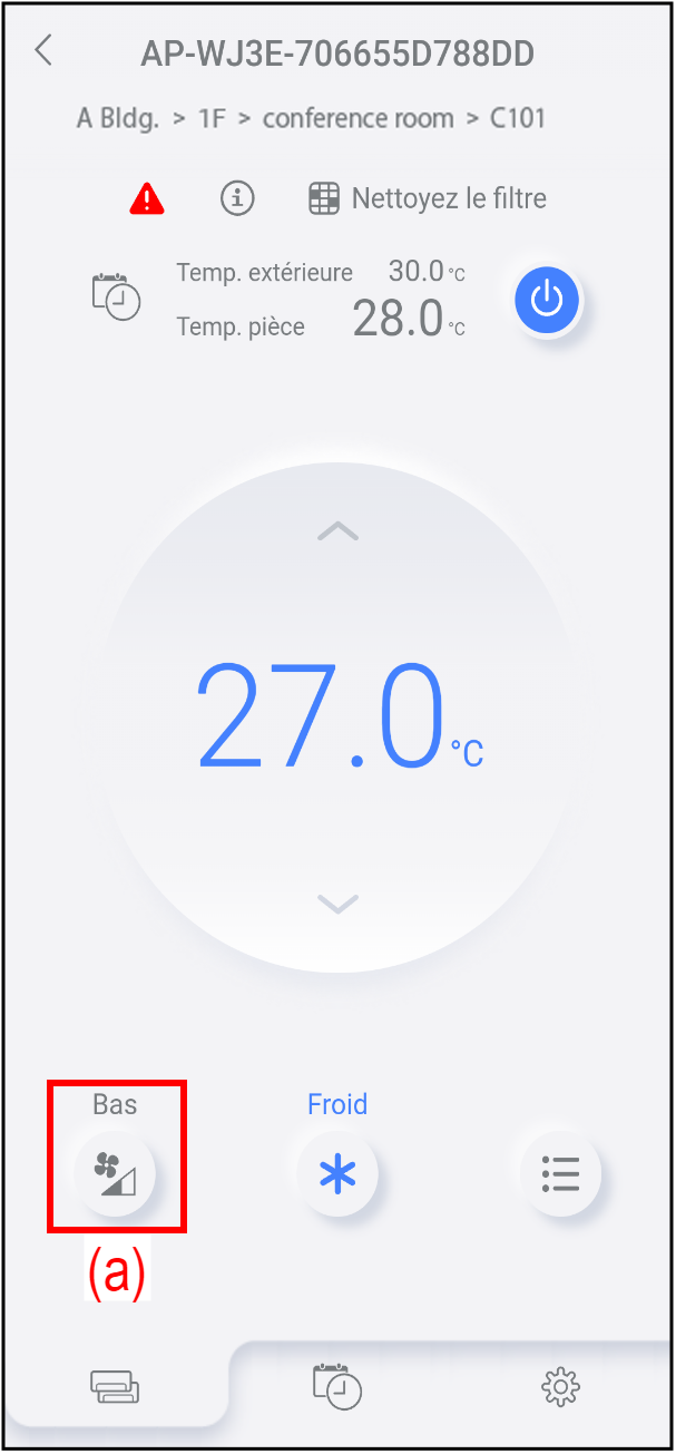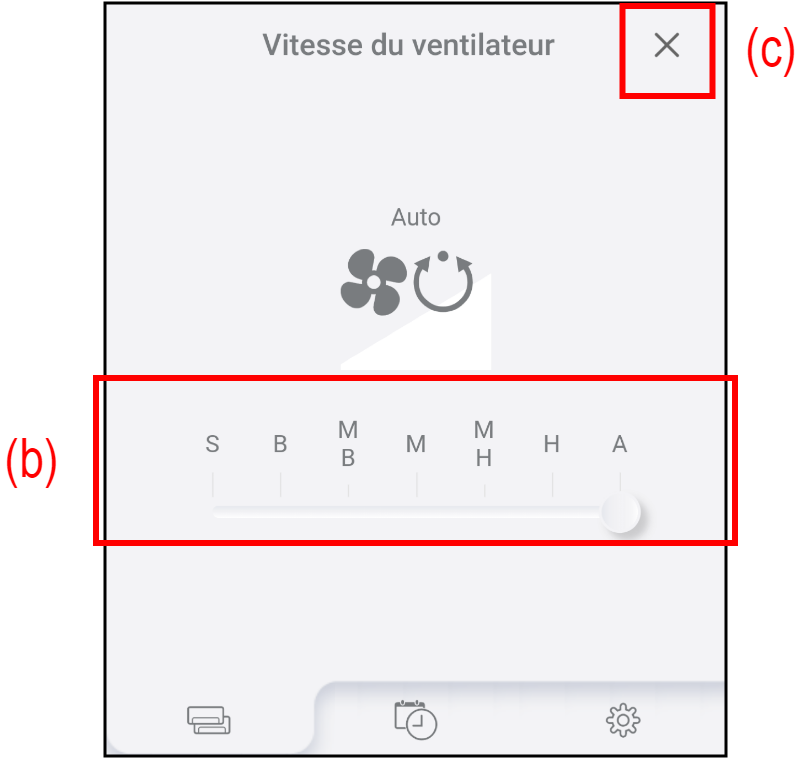 Faites défiler la barre (b) pour ajuster la vitesse du ventilateur.