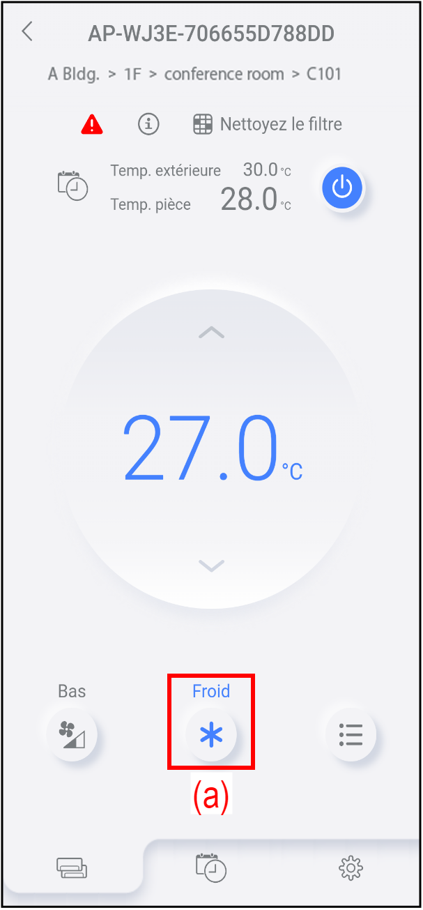 Pour changer le mode de fonctionnement, appuyez sur le bouton (a).