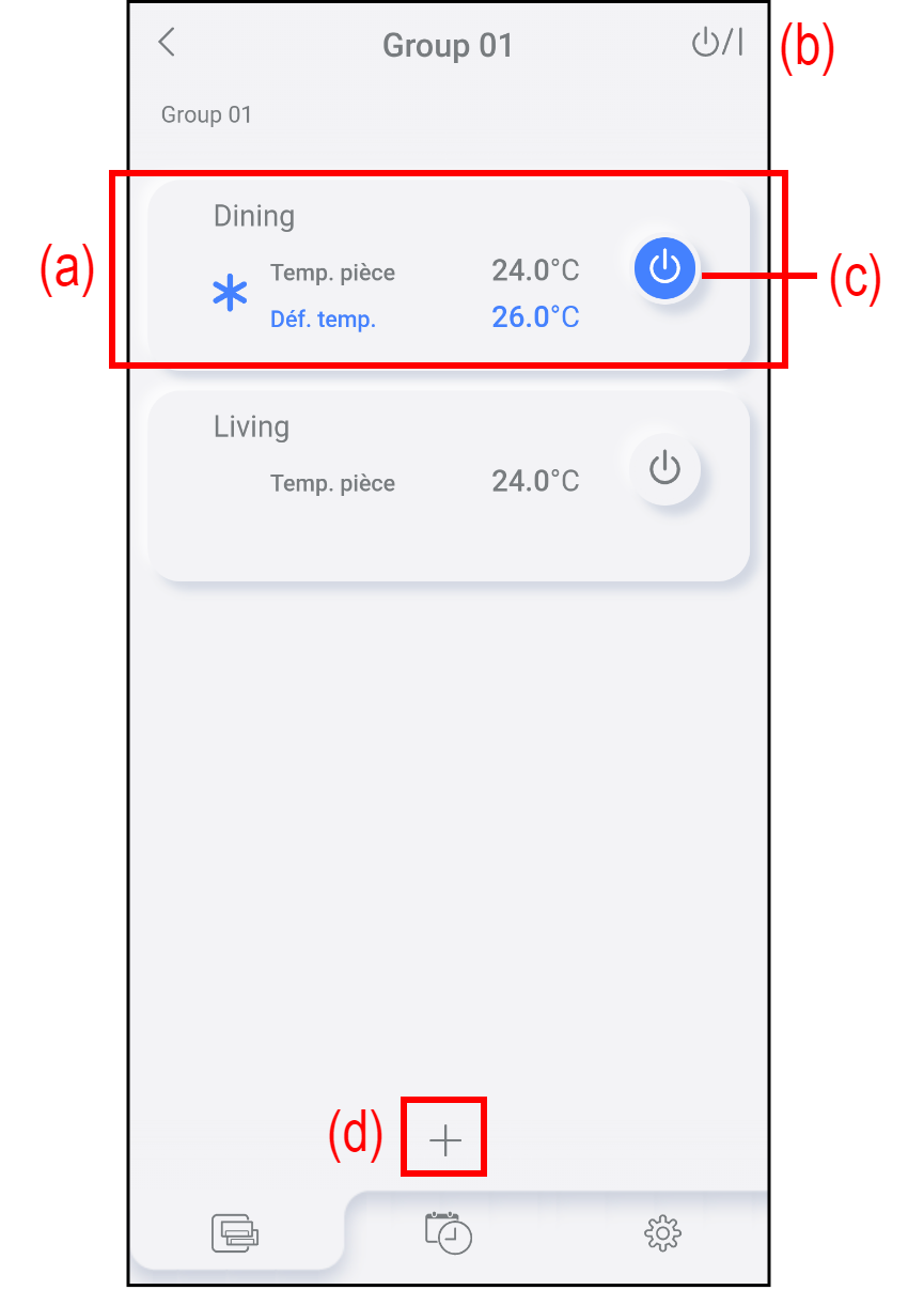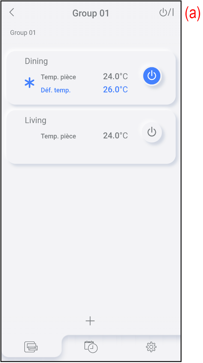 Appuyez sur (c) pour démarrer/arrêter le fonctionnement de chaque climatiseur.