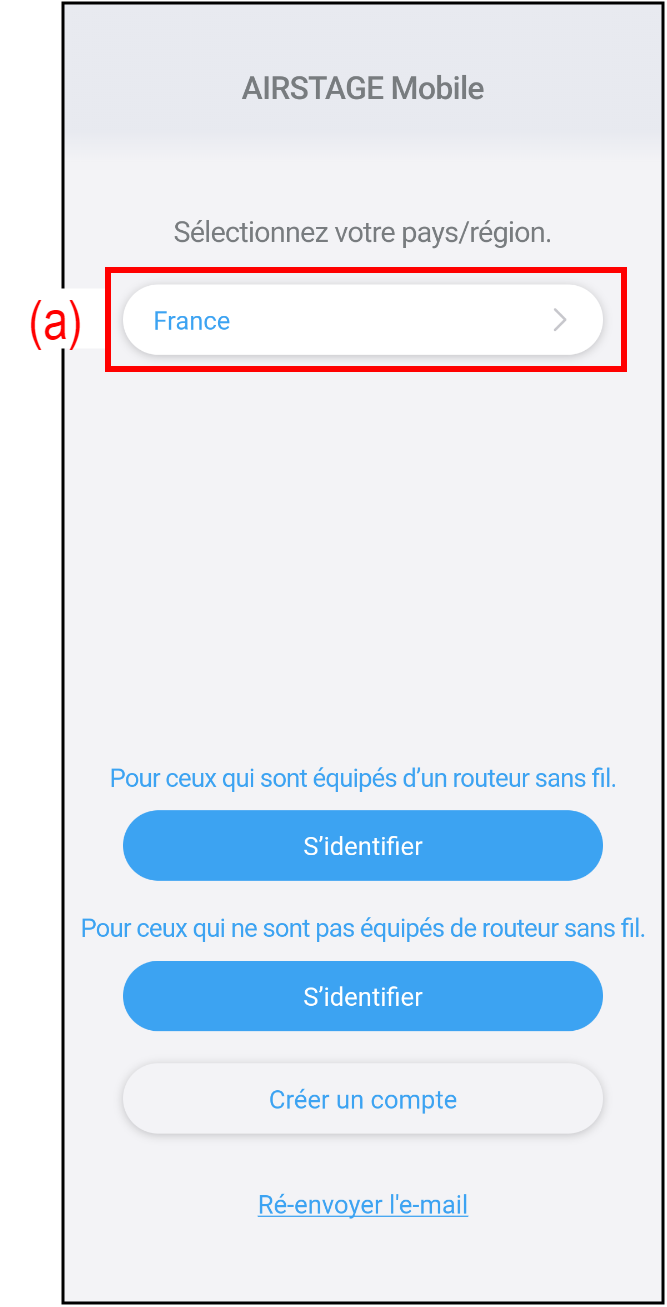 - Si vous n'avez pas de compte AIRSTAGE Mobile, créez un nouveau compte en suivant « Création de compte ».