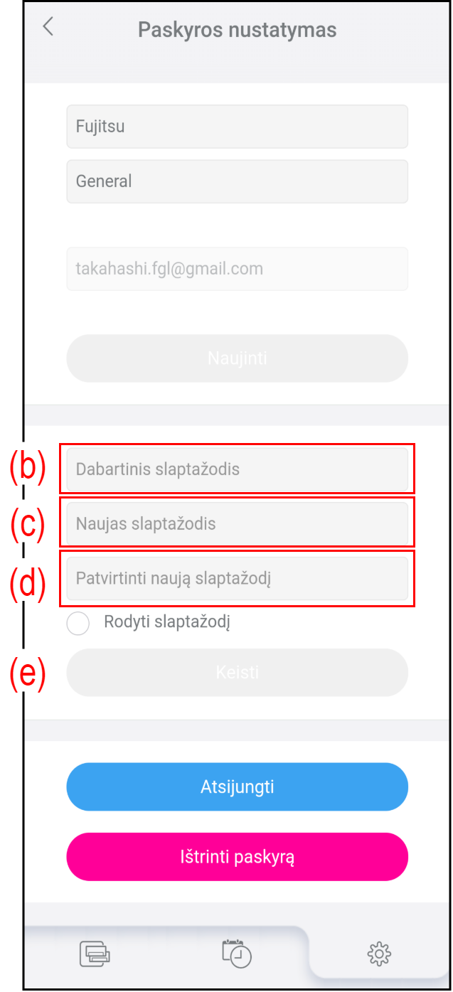 Norėdami pakeisti savo paskyros informaciją ir slaptažodį, nustatymų ekrane „Nustatymas“ bakstelėkite (a).